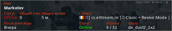 Играет на Counter Strike 1.6 сервере. Страна: РумынияПервый раз замечен 18:52 04.04.2026