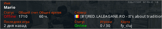 Играет на Counter Strike 1.6 сервере. Страна: РумынияПервый раз замечен 22:54 19.11.2022