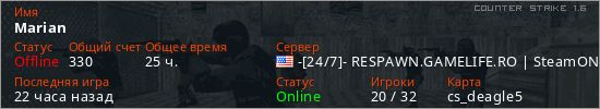 Играет на Counter Strike 1.6 сервере. Страна: СШАПервый раз замечен 22:57 31.01.2025