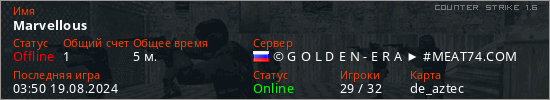 Играет на Counter Strike 1.6 сервере. Страна: РоссияПервый раз замечен 02:41 19.08.2024
