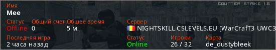 Последний раз был в сети Час назад Игрок с таким ником замечен на 5 серверах