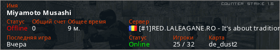 Играет на Counter Strike 1.6 сервере. Страна: РумынияПервый раз замечен 22:25 26.02.2026