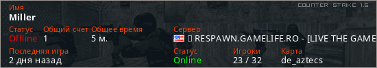 Играет на Counter Strike 1.6 сервере. Страна: СШАПервый раз замечен 04:21 20.03.2026