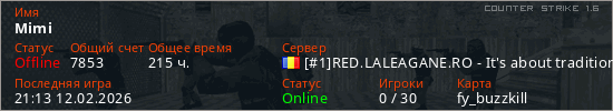 Играет на Counter Strike 1.6 сервере. Страна: РумынияПервый раз замечен 00:11 10.01.2023