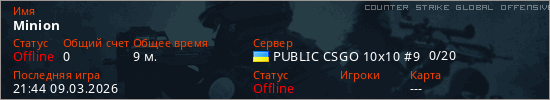 Играет на Counter Strike Global Offensive сервере. Страна: УкраинаПервый раз замечен 15:09 09.03.2026