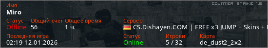 Играет на Counter Strike 1.6 сервере. Страна: ГерманияПервый раз замечен 08:44 31.12.2025