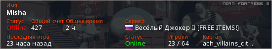 Играет на Team Fortress 2 сервере. Страна: РоссияПервый раз замечен 21:31 10.03.2026
