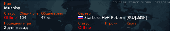 Играет на Counter Strike Global Offensive сервере. Страна: РоссияПервый раз замечен 16:31 16.03.2026