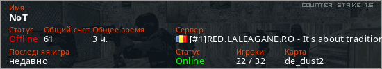 Играет на Counter Strike 1.6 сервере. Страна: РумынияПервый раз замечен 20:56 10.12.2025