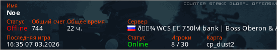 Играет на Counter Strike Global Offensive сервере. Страна: РоссияПервый раз замечен 01:05 25.02.2026