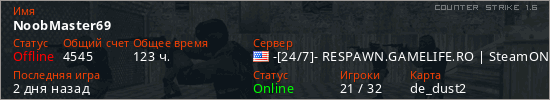 Последний раз был в сети Вчера Игрок с таким ником замечен на 13 серверах