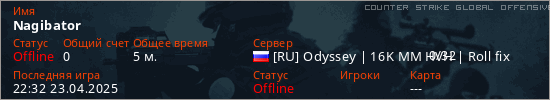 Играет на Counter Strike Global Offensive сервере. Страна: РоссияПервый раз замечен 22:30 23.04.2025