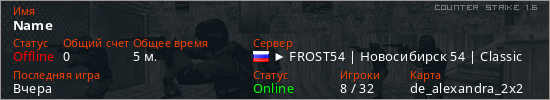 Последний раз был в сети Вчера Игрок с таким ником замечен на 36 серверах