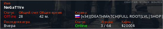 Последний раз был в сети Вчера Игрок с таким ником замечен на 6 серверах