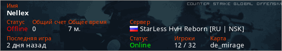 Играет на Counter Strike Global Offensive сервере. Страна: РоссияПервый раз замечен 16:10 08.02.2026