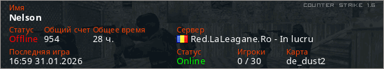 Играет на Counter Strike 1.6 сервере. Страна: РумынияПервый раз замечен 14:58 12.03.2023