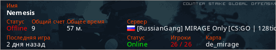 Играет на Counter Strike Global Offensive сервере. Страна: РоссияПервый раз замечен 03:31 08.03.2026