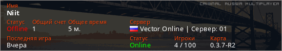 Последний раз был в сети Вчера Игрок с таким ником замечен на 2 серверах