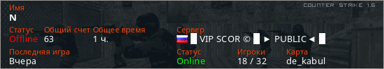 Играет на Counter Strike 1.6 сервере. Страна: РоссияПервый раз замечен 07:51 09.09.2025