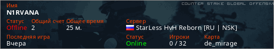 Играет на Counter Strike Global Offensive сервере. Страна: РоссияПервый раз замечен 20:21 02.01.2026