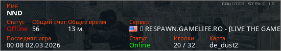 Играет на Counter Strike 1.6 сервере. Страна: СШАПервый раз замечен 15:22 24.02.2026