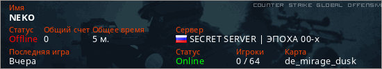 Играет на Counter Strike Global Offensive сервере. Страна: РоссияПервый раз замечен 19:35 25.12.2025