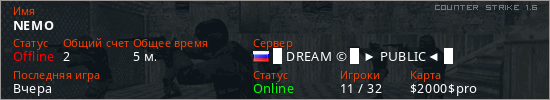 Последний раз был в сети Вчера Игрок с таким ником замечен на 28 серверах