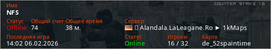 Играет на Counter Strike 1.6 сервере. Страна: ГерманияПервый раз замечен 12:12 23.01.2026
