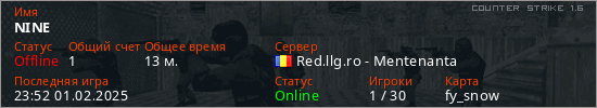Играет на Counter Strike 1.6 сервере. Страна: РумынияПервый раз замечен 07:59 20.04.2023