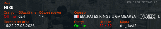 Играет на Counter Strike 1.6 сервере. Страна: ФранцияПервый раз замечен 12:44 27.03.2026