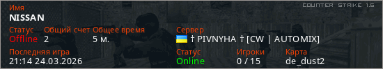 Играет на Counter Strike 1.6 сервере. Страна: УкраинаПервый раз замечен 21:09 24.03.2026