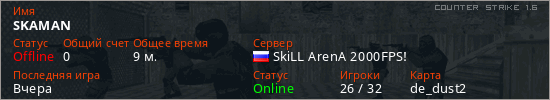 Играет на Counter Strike 1.6 сервере. Страна: РоссияПервый раз замечен 08:35 19.11.2025