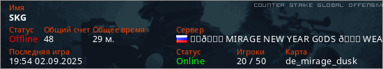 Играет на Counter Strike Global Offensive сервере. Страна: РоссияПервый раз замечен 06:29 21.08.2025