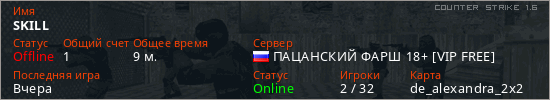 Последний раз был в сети Вчера Игрок с таким ником замечен на 33 серверах