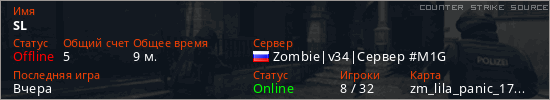 Играет на Counter Strike Source сервере. Страна: РоссияПервый раз замечен 08:50 21.12.2025