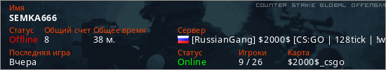 Играет на Counter Strike Global Offensive сервере. Страна: РоссияПервый раз замечен 17:25 06.03.2026
