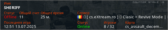 Последний раз был в сети 12:51 13.07.2025 Игрок с таким ником замечен на 20 серверах