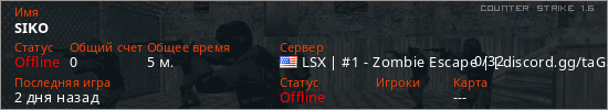 Играет на Counter Strike 1.6 сервере. Страна: СШАПервый раз замечен 15:45 02.02.2026