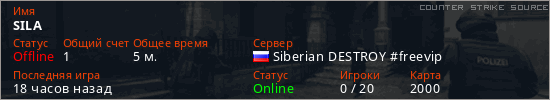 Играет на Counter Strike Source сервере. Страна: РоссияПервый раз замечен 17:03 21.01.2026