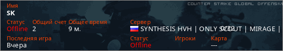 Играет на Counter Strike Global Offensive сервере. Страна: РоссияПервый раз замечен 11:31 25.01.2026