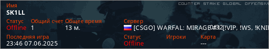 Играет на Counter Strike Global Offensive сервере. Страна: РоссияПервый раз замечен 21:37 07.06.2025