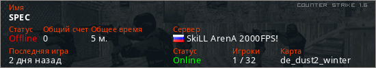 Играет на Counter Strike 1.6 сервере. Страна: РоссияПервый раз замечен 11:48 24.12.2025