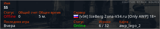 Играет на Counter Strike Source сервере. Страна: РоссияПервый раз замечен 00:09 14.01.2026