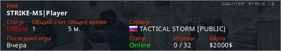 Играет на Counter Strike 1.6 сервере. Страна: РоссияПервый раз замечен 19:08 15.02.2026