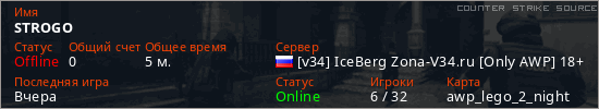 Играет на Counter Strike Source сервере. Страна: РоссияПервый раз замечен 16:54 14.01.2026