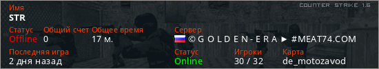 Играет на Counter Strike 1.6 сервере. Страна: РоссияПервый раз замечен 04:36 02.11.2025