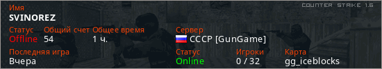 Последний раз был в сети Вчера Игрок с таким ником замечен на 13 серверах