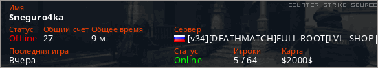 Играет на Counter Strike Source сервере. Страна: РоссияПервый раз замечен 17:38 21.03.2026
