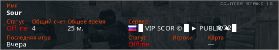 Играет на Counter Strike 1.6 сервере. Страна: РоссияПервый раз замечен 02:03 13.03.2026