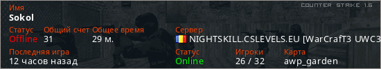 Последний раз был в сети 12 часов назад Игрок с таким ником замечен на 37 серверах